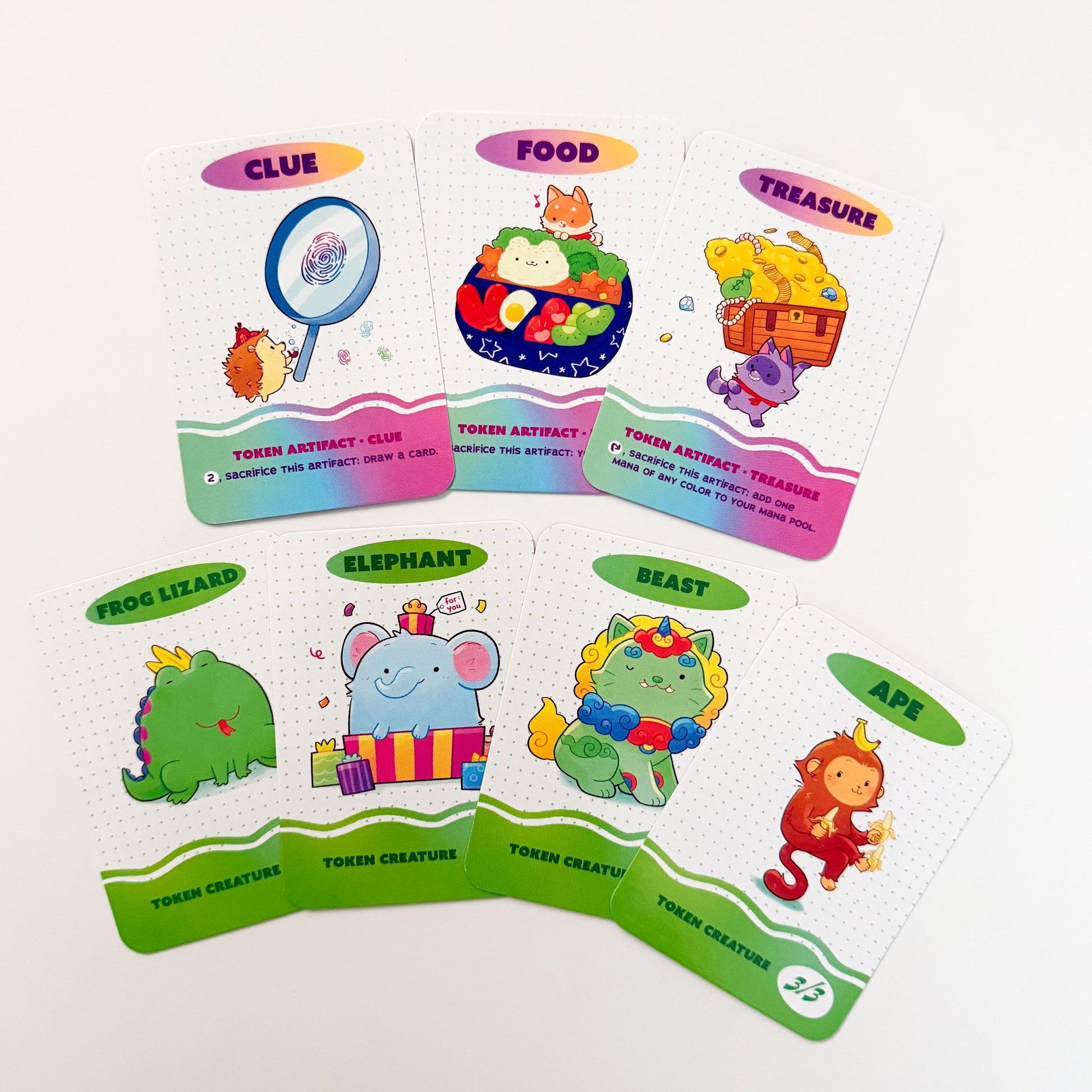 A set of 7 cute & magical tokens to use when playing card games! Water-resistant, back side features a cute logo design. Each set includes: